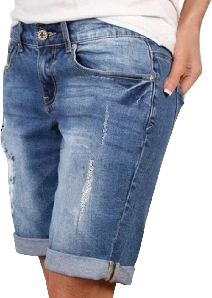 jeans shorts damen knielang